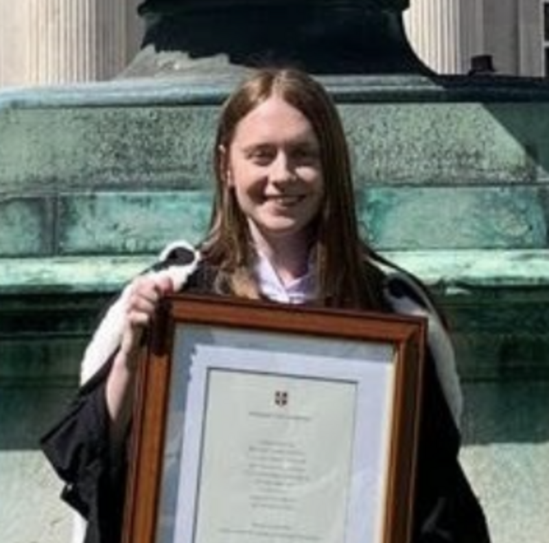 Bethany Downey, an ex Coombe Head Girl, who has graduated with a 1st Class Honours Degree in Law from St Catherine's College Cambridge. Bethany now starts as a trainee solicitor at Clifford Chance.